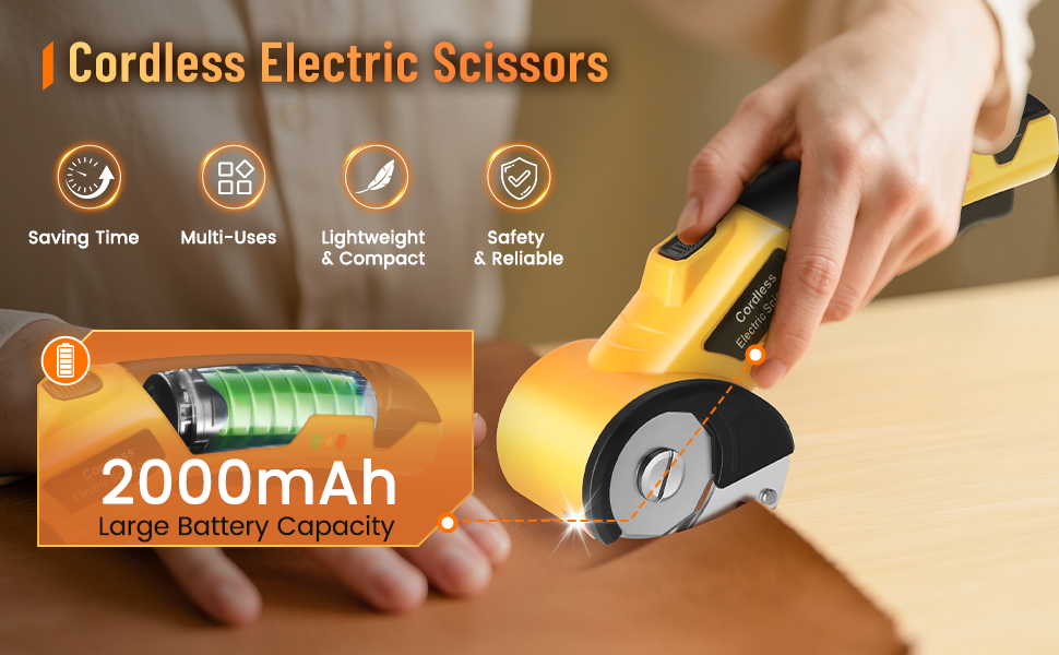 Weighing only 0.37kg, this cordless cutter works perfectly as an electric utility knife or rotary fabric cutter. The non-slip ergonomic grip ensures comfort during extended use — ideal for DIYers, hobbyists, and professionals handling cardboard, carpet, or fabric.