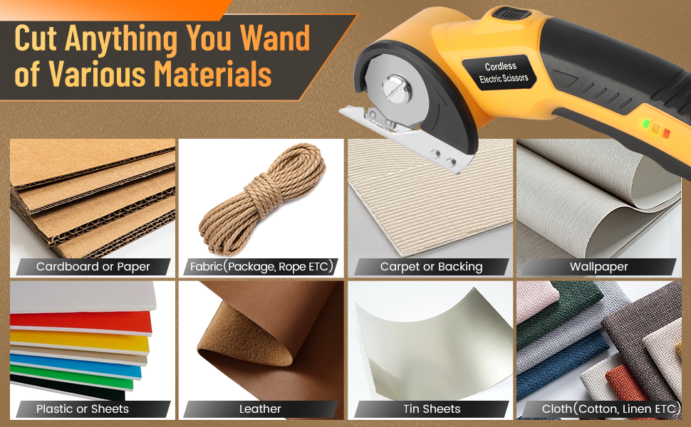 This automatic cutting tool is great for curtains, carpets, DIY crafts, packaging, holiday decorations, leather, and plastics. Use it as a box opener, paper trimmer, or rotary fabric cutter — all in one.