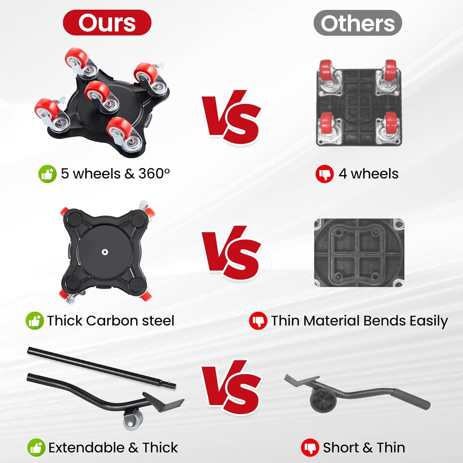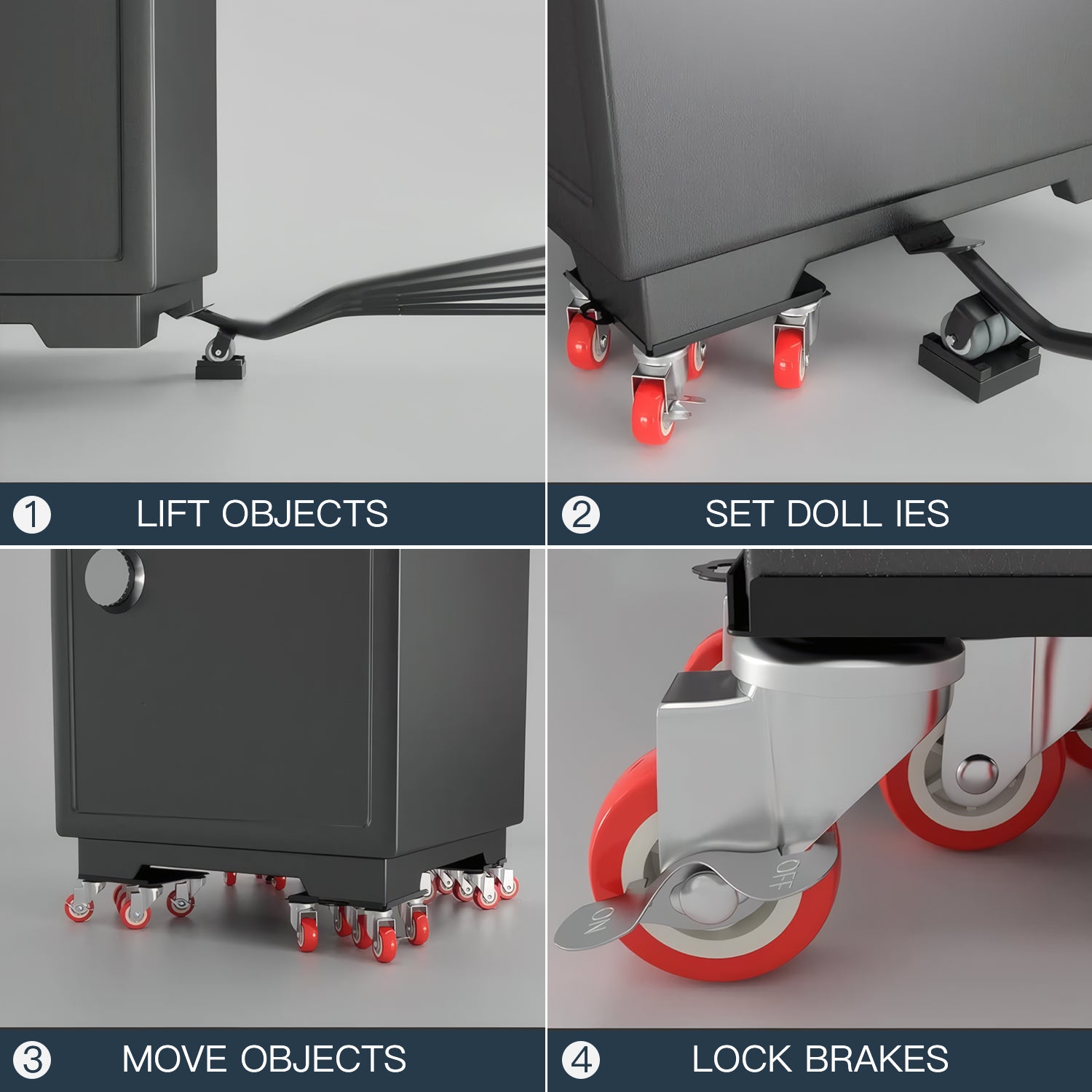 - Each dolly supports up to 3474 pounds (1575kg) effortlessly.