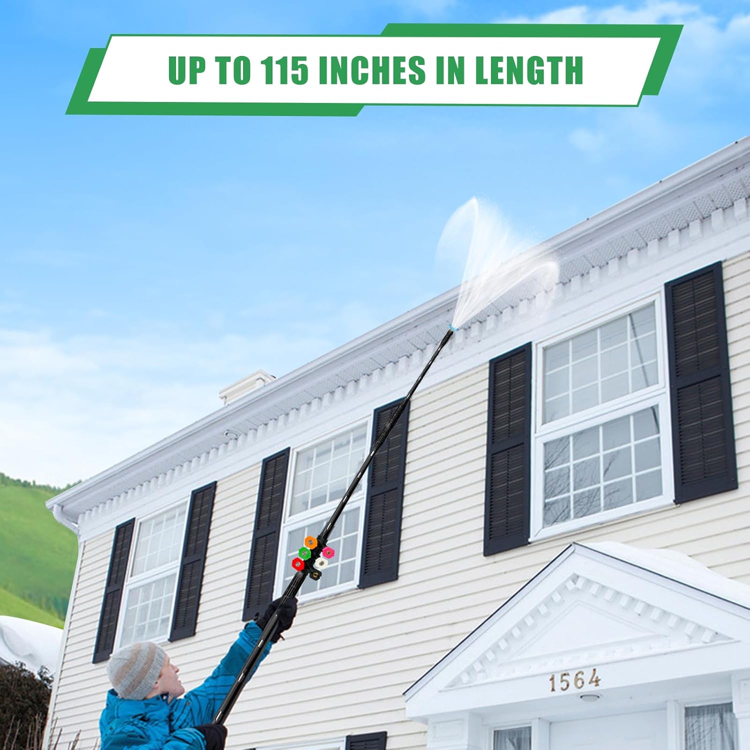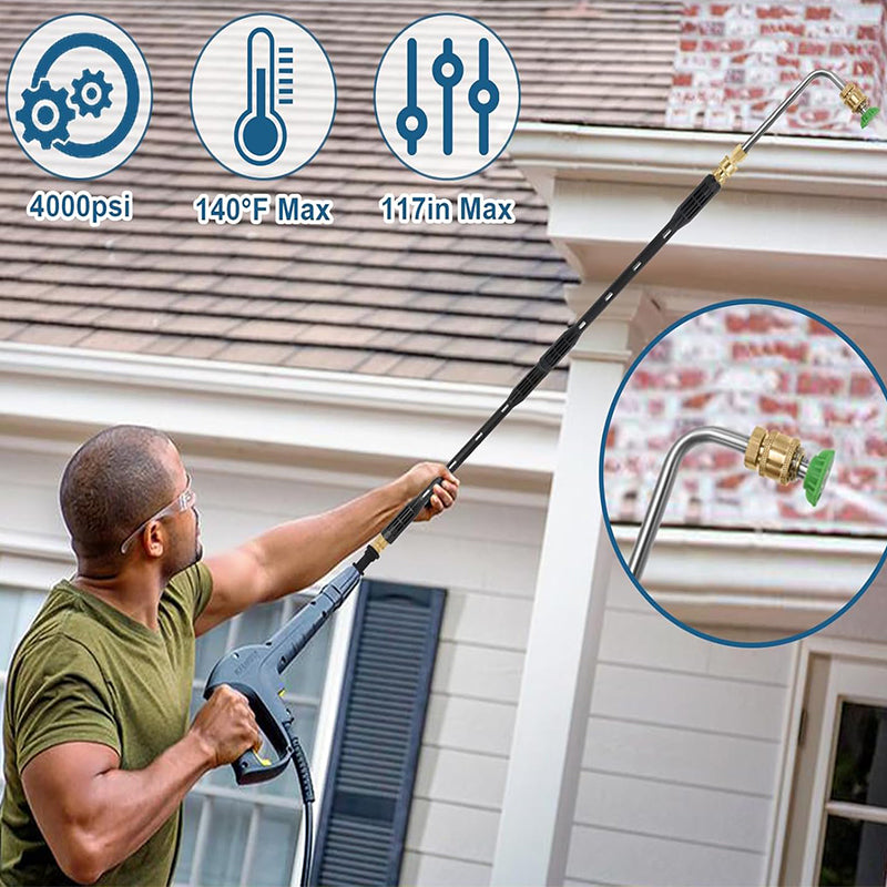 Reach Every Spot: With an adjustable length that extends up to 8 feet, no more ladders or awkward bending. Clean high windows, roofs, and hard-to-reach corners with ease.